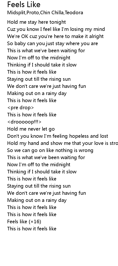 | [02:30.90] | Feels like (×16) |