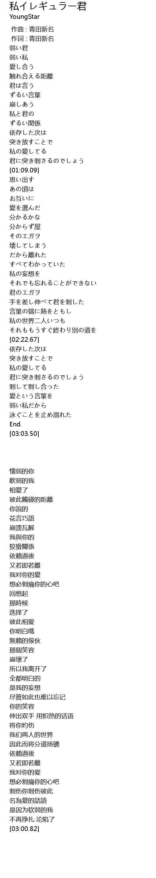 | [00:01.00] | 作词 : 青田新名 |
