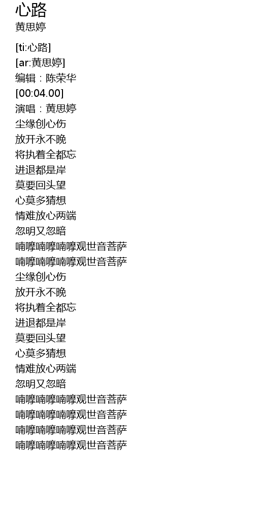 | [01:38.68] | 喃嚤喃嚤喃嚤观世音菩萨 |