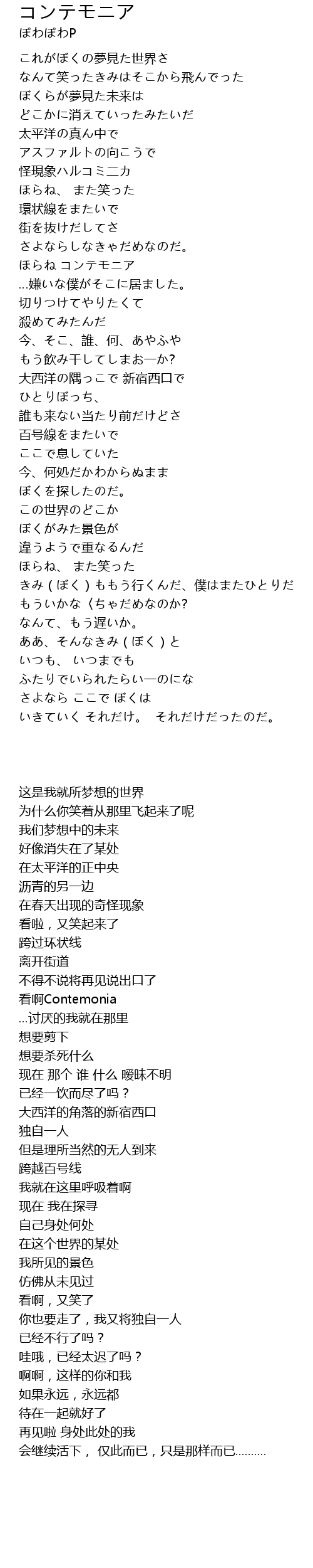 | [00:48.910] | これがぼくの夢見た世界さ |