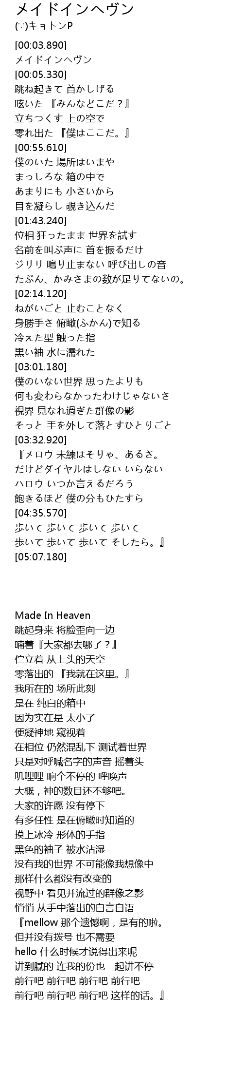| [00:04.590] | メイドインヘヴン |
