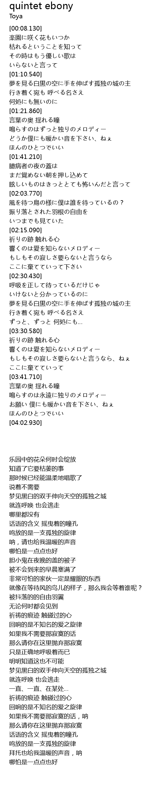 | [03:44.030] | 鳴らすのは永遠に独りのメロディー |