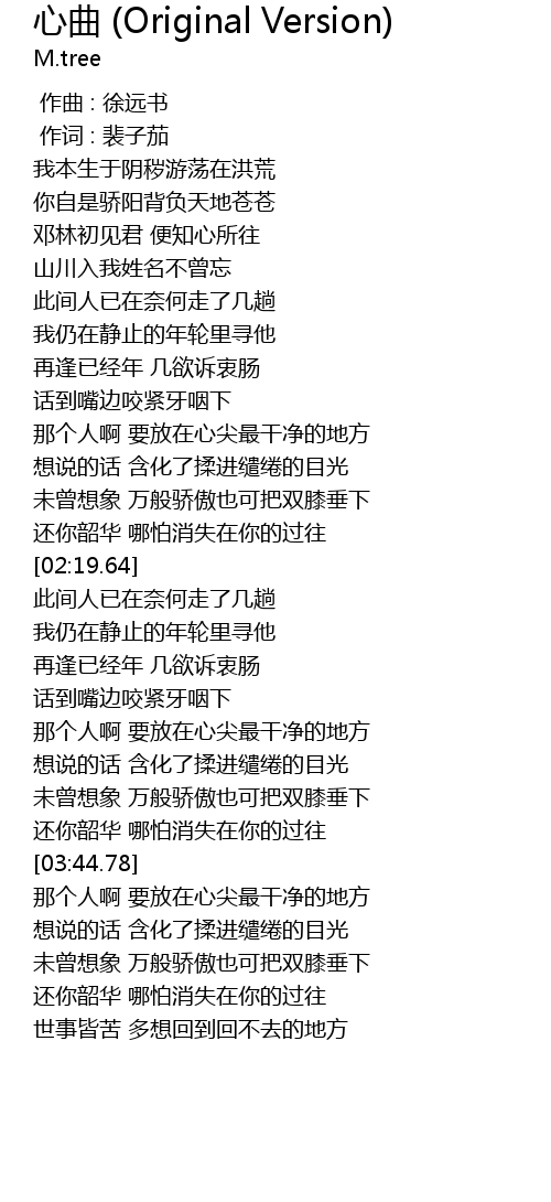 | [04:46.66] | 世事皆苦 多想回到回不去的地方 |