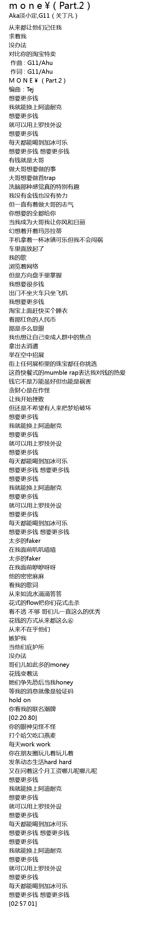 | [02:41.24] | 想要更多钱 想要更多钱 |
