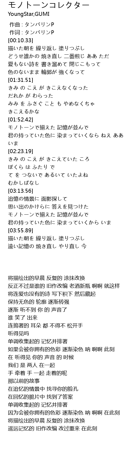 [03:35.24] モノトーンで揃えた 記憶が並んで