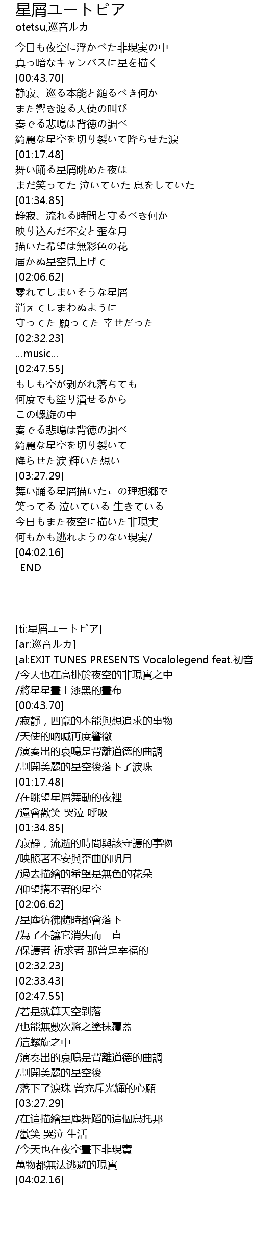 | [03:14.58] | 綺麗な星空を切り裂いて |