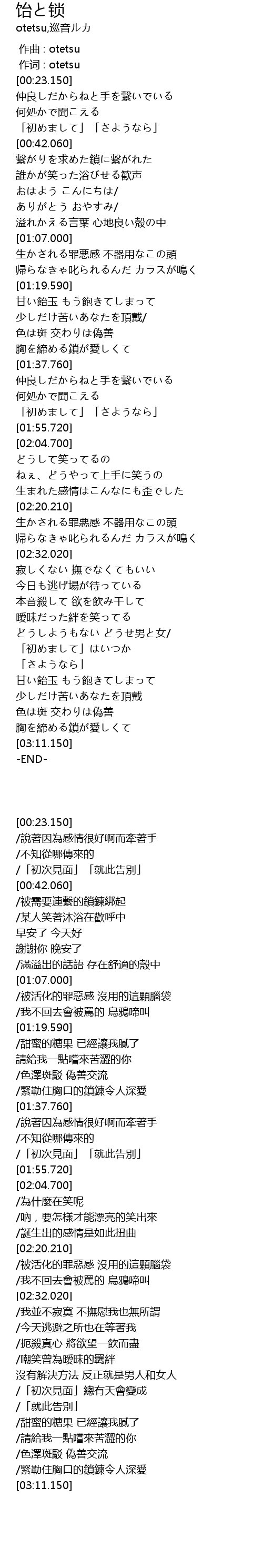 | [01:32.240] | 胸を締める鎖が愛しくて |