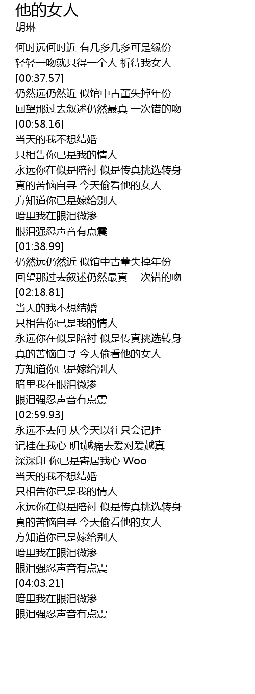 | [03:42.76] | 真的苦恼自寻 今天偷看他的女人 |