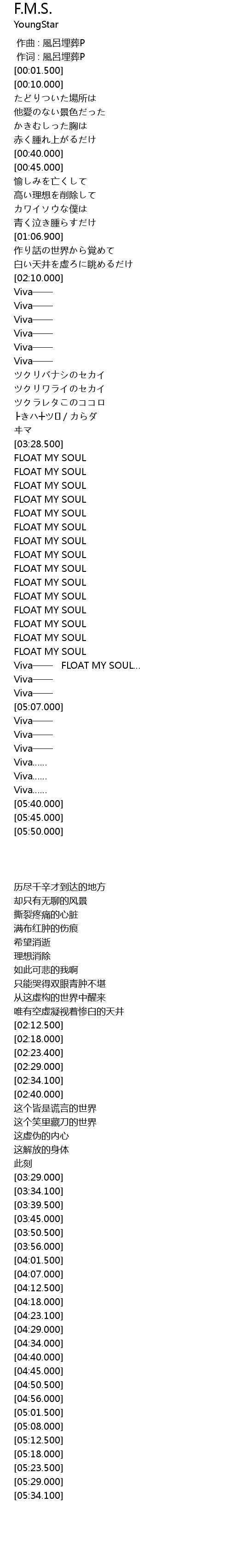 | [04:50.500] | Viva FLOAT MY SOUL |