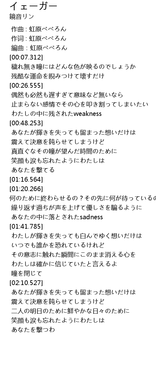 | [00:42.061] | わたしの中に残されたweakness |