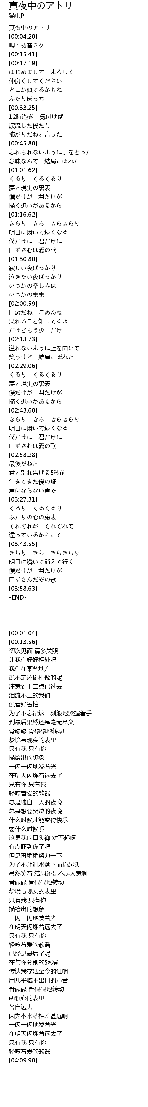 真夜中のアトリ |