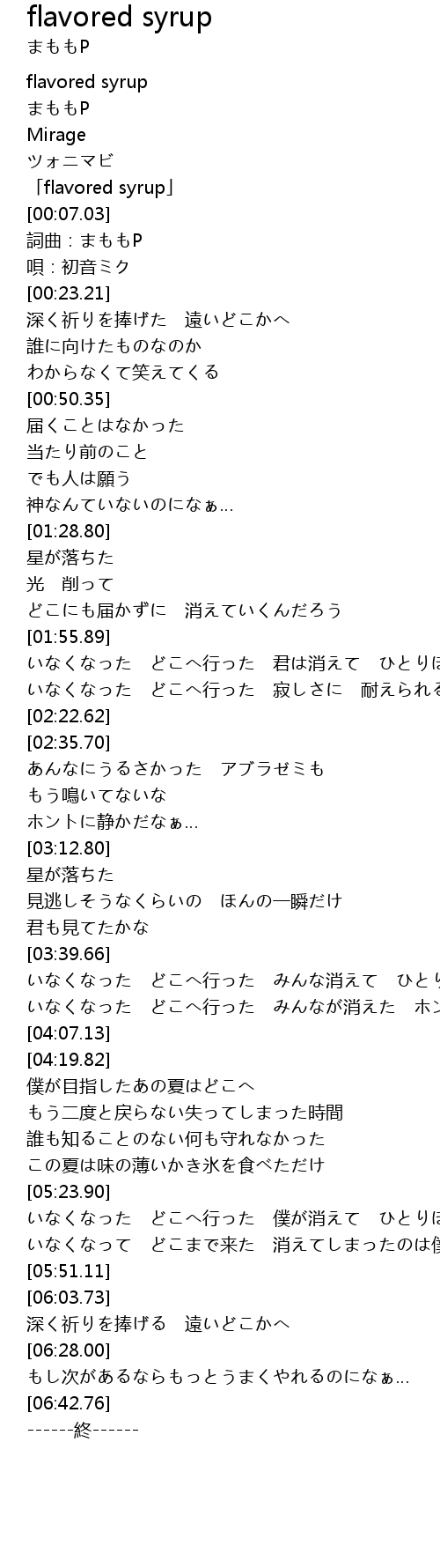 | [00:00.77] | 「flavored syrup」 |