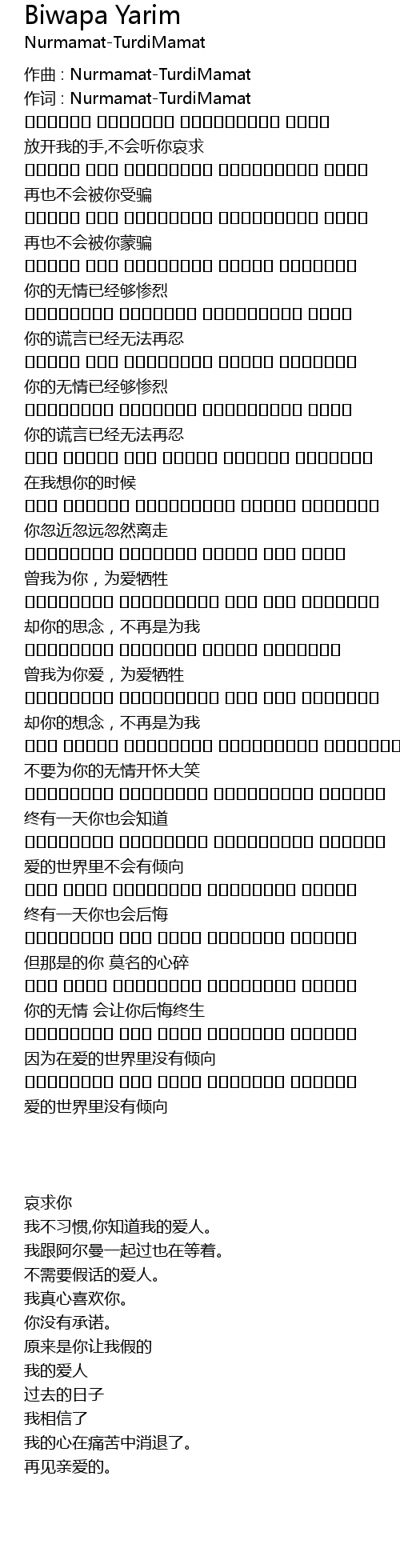 | 作词 : Nurmamat-TurdiMamat | |