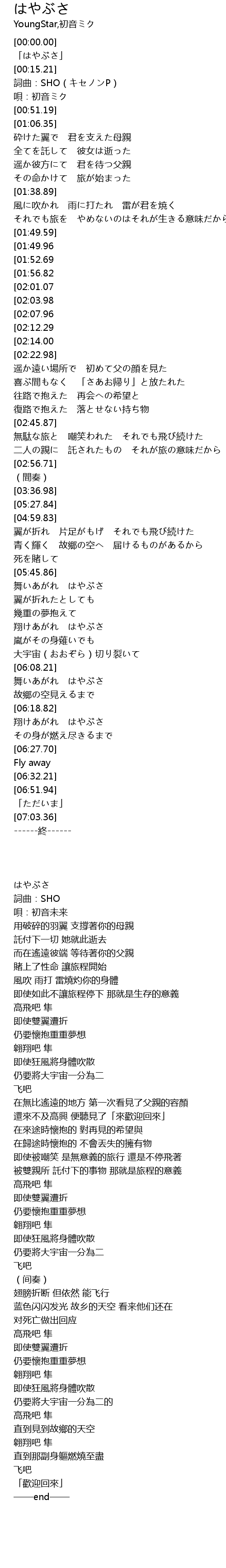 | [00:03.05] | 「はやぶさ」 |
