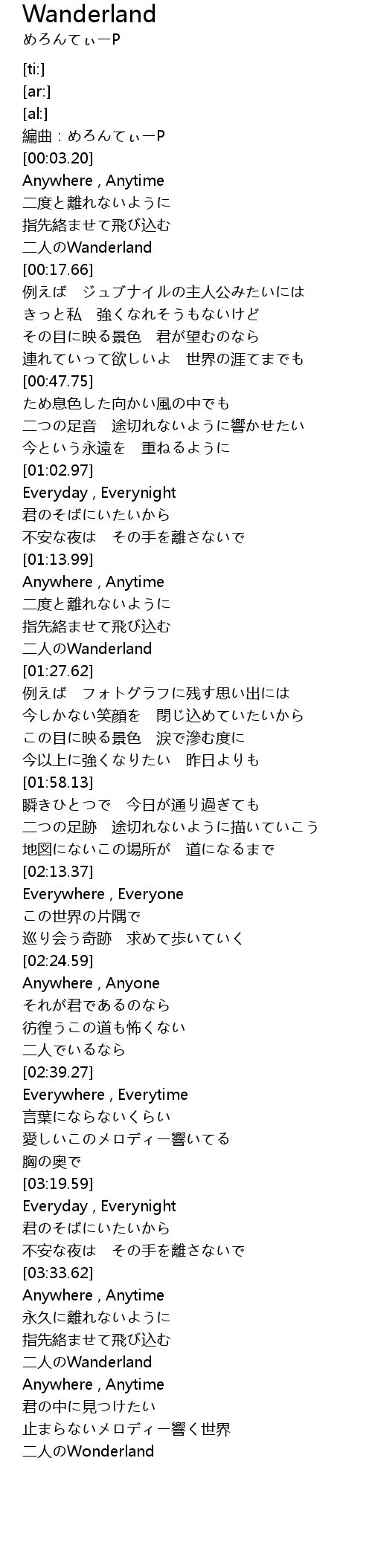 | [00:13.13] | 二人のWanderland |