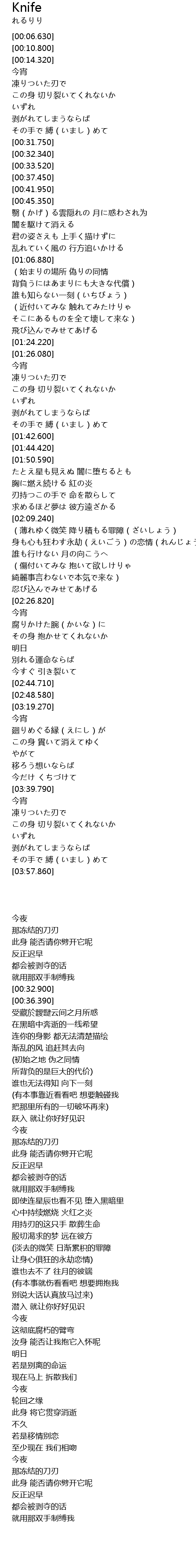 | [02:00.520] | 刃持つこの手で 命を散らして |