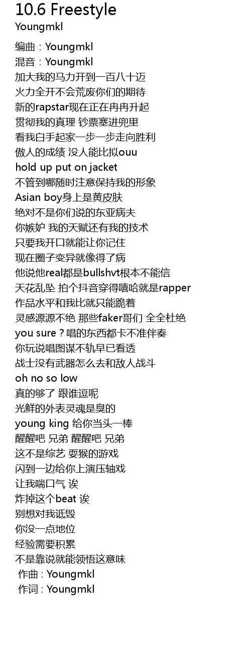 | [00:04] | 编曲:Youngmkl |