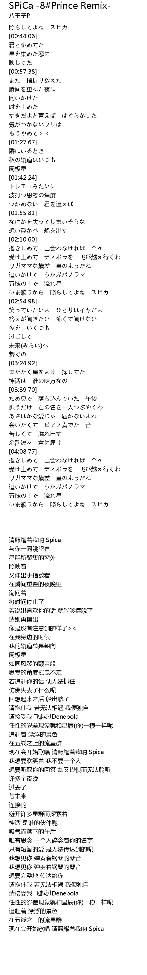 SPiCa -8#Prince Remix- Lyrics