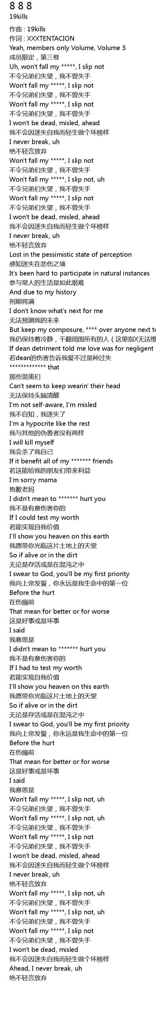 | 我仍保持着冷静,干翻周围所有的人(这里指X无法维系一段感情,信任他人) | |