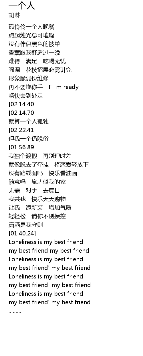 | [02:06.72] | Loneliness is my best friend |