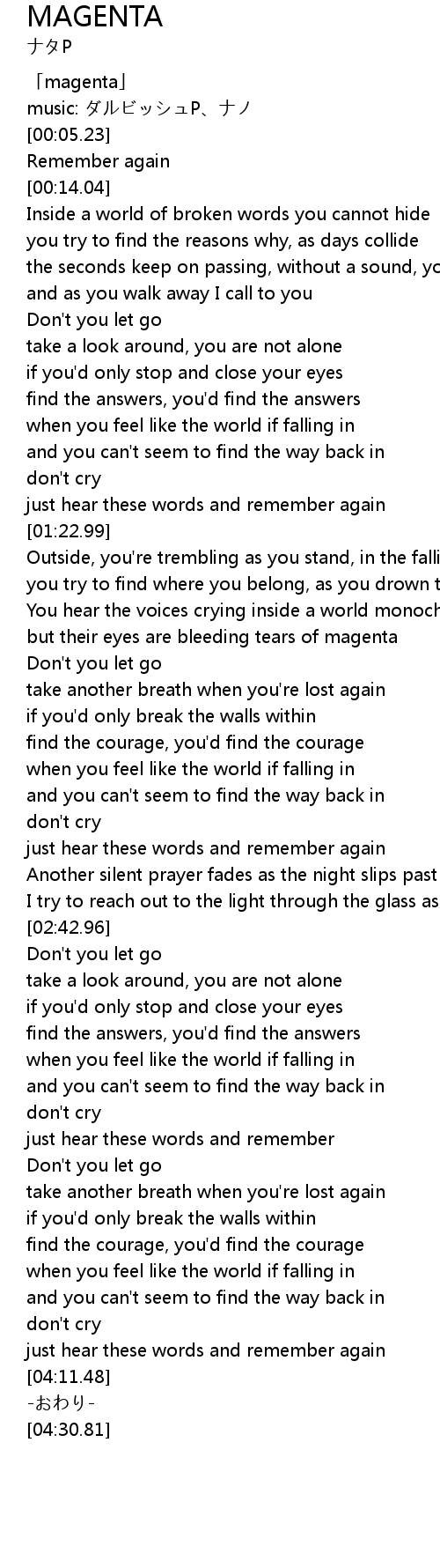 | [01:58.10] | but their eyes are bleeding tears of magenta |
