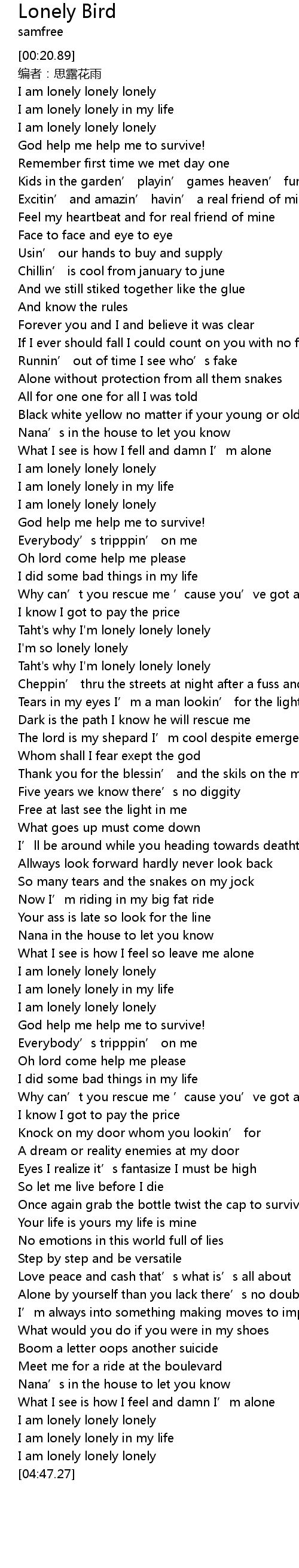 | [04:29.19] | What I see is how I feel and damn I’m alone |