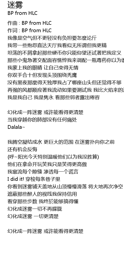 | 作词 : BP from HLC | |