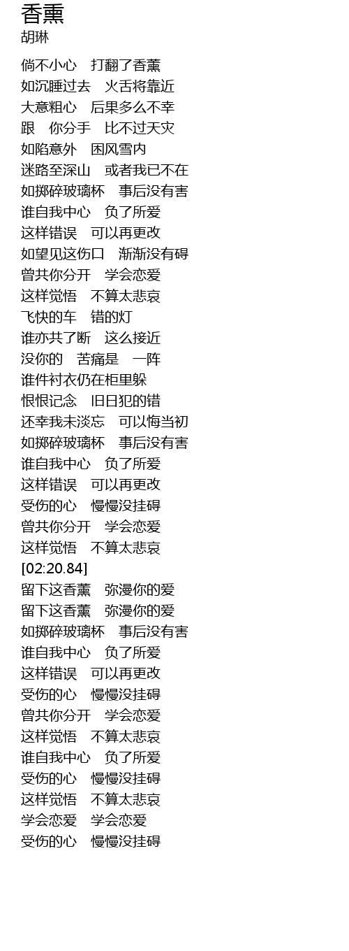 | [02:50.98] | 留下这香薰 弥漫你的爱 |