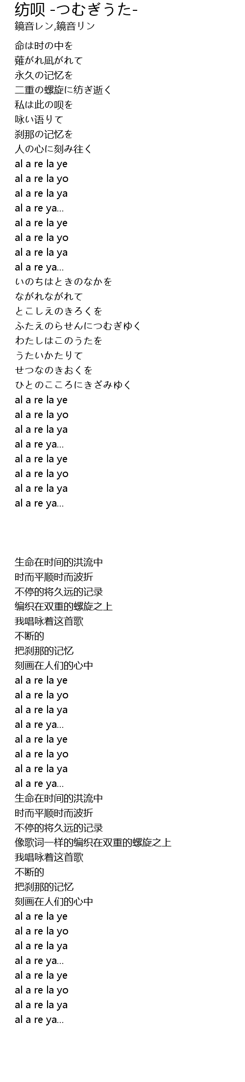 | [01:45.190] | al a re la ye |