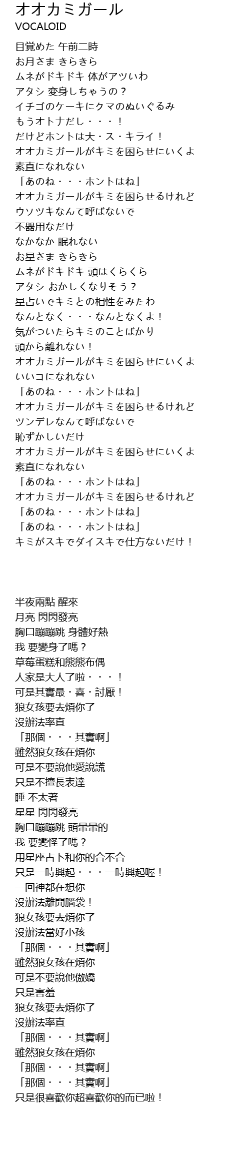 | [02:16.39] | オオカミガールがキミを困らせにいくよ |