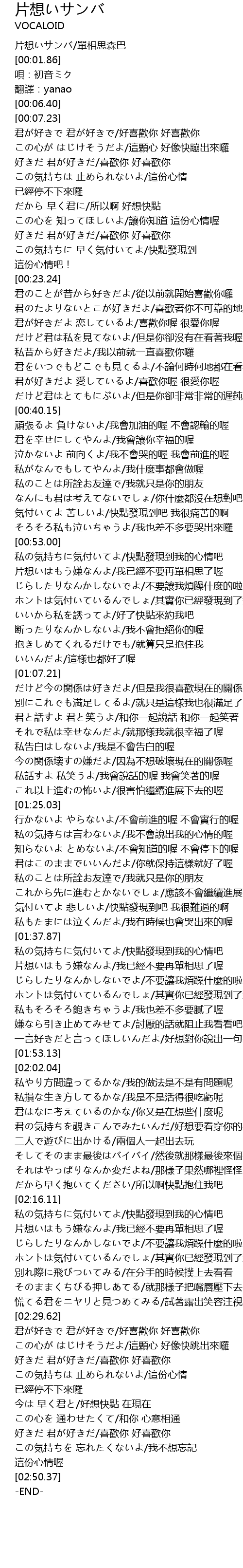 | [00:34.52] | 私昔から好きだよ/我以前就一直喜歡你囉 |