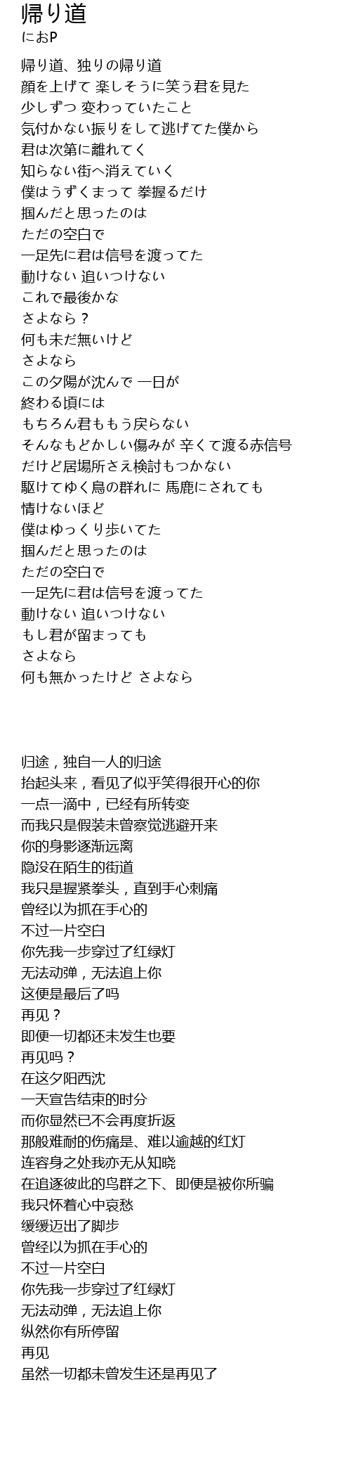 | [00:16.34] | 帰り道、独りの帰り道 |