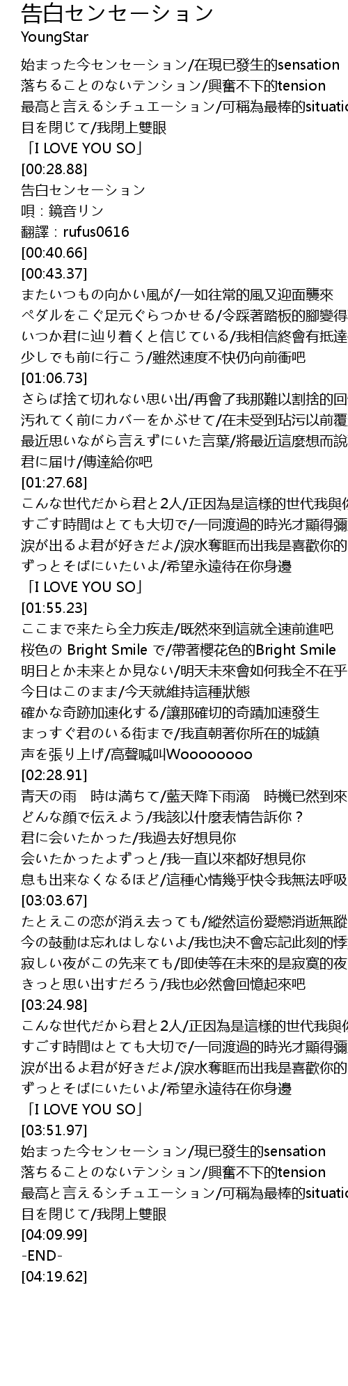 | [02:16.62] | 声を張り上げ/高聲喊叫Woooooooo |
