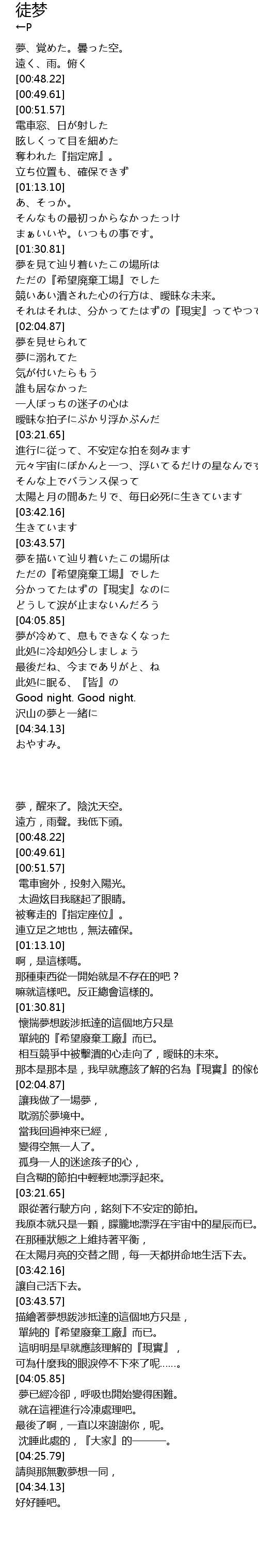 | [01:39.96] | ただの『希望廃棄工場』でした |