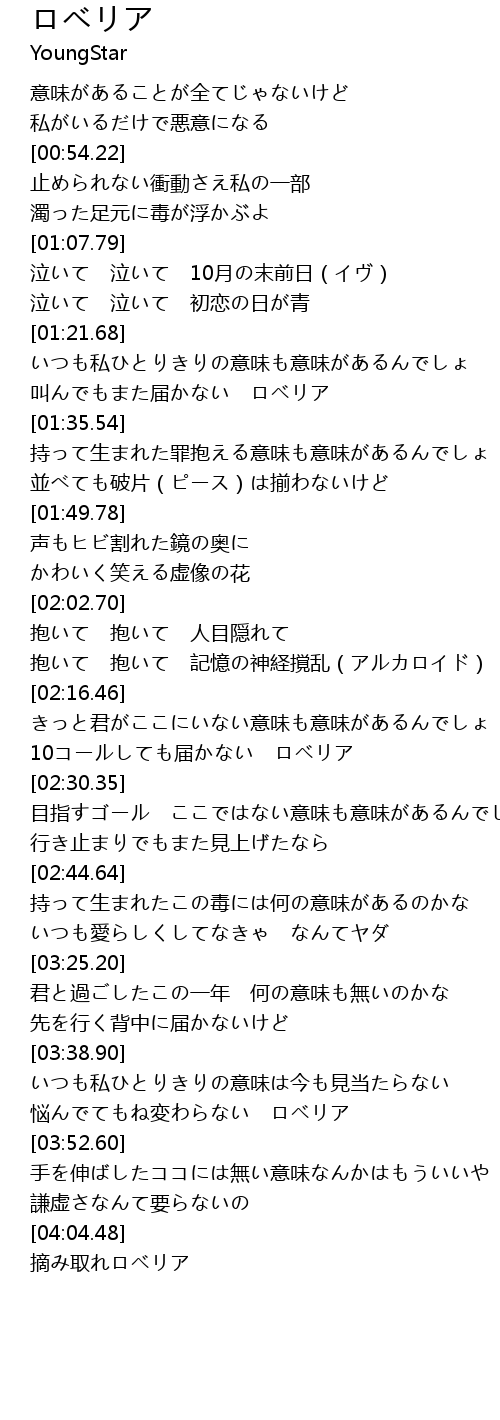 | [01:29.46] | 叫んでもまた届かない ロベリア |