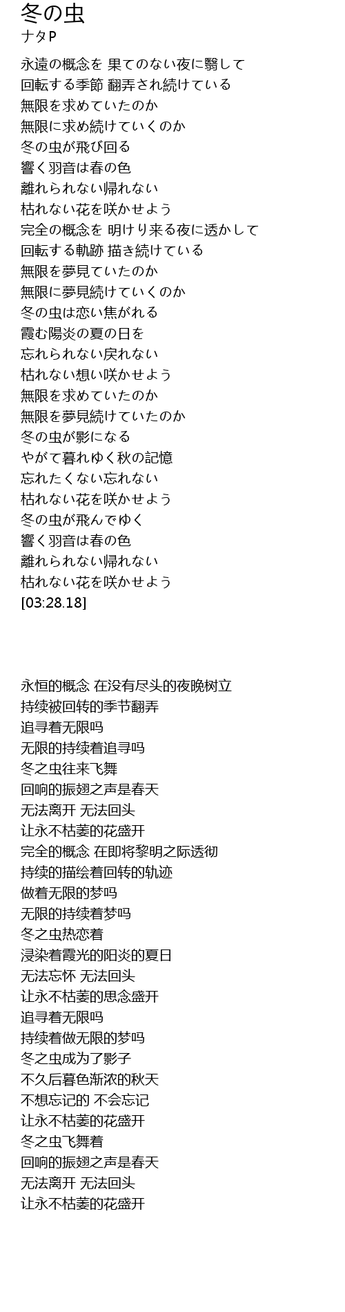 | [00:54.48] | 冬の虫が飛び回る |