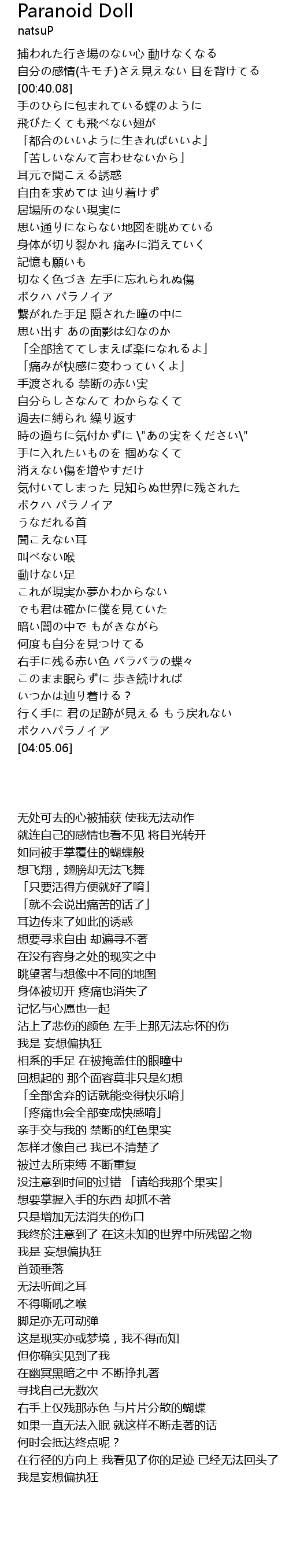 | [02:54.89] | ボクハ パラノイア |