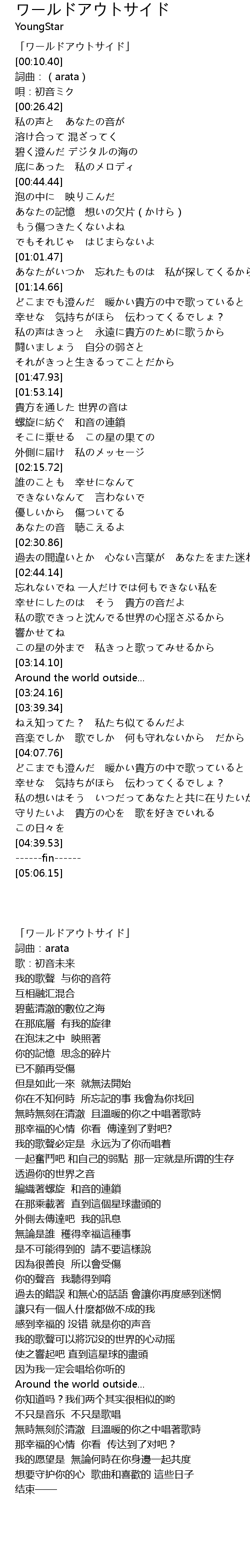 | [00:00.00] | 「ワールドアウトサイド」 |