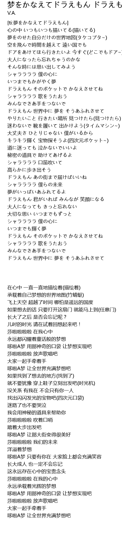 | Song | 梦をかなえてドラえもん ドラえもん |
