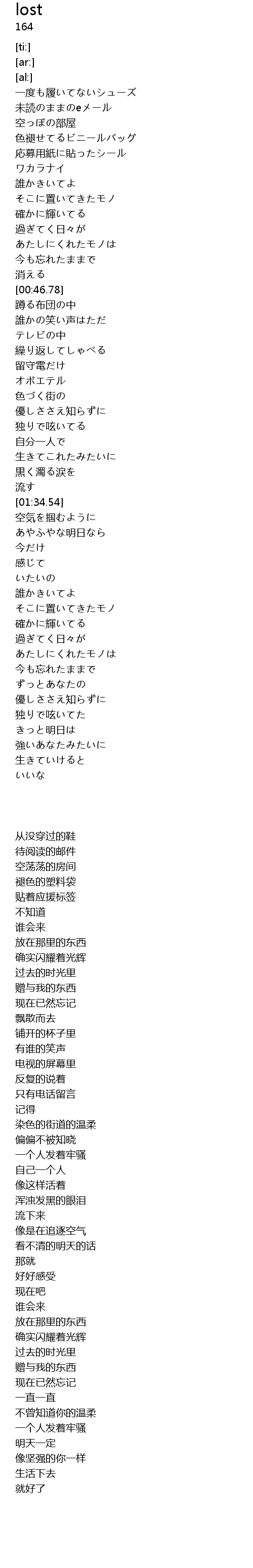 | [00:11.58] | 色褪せてるビニールバッグ |