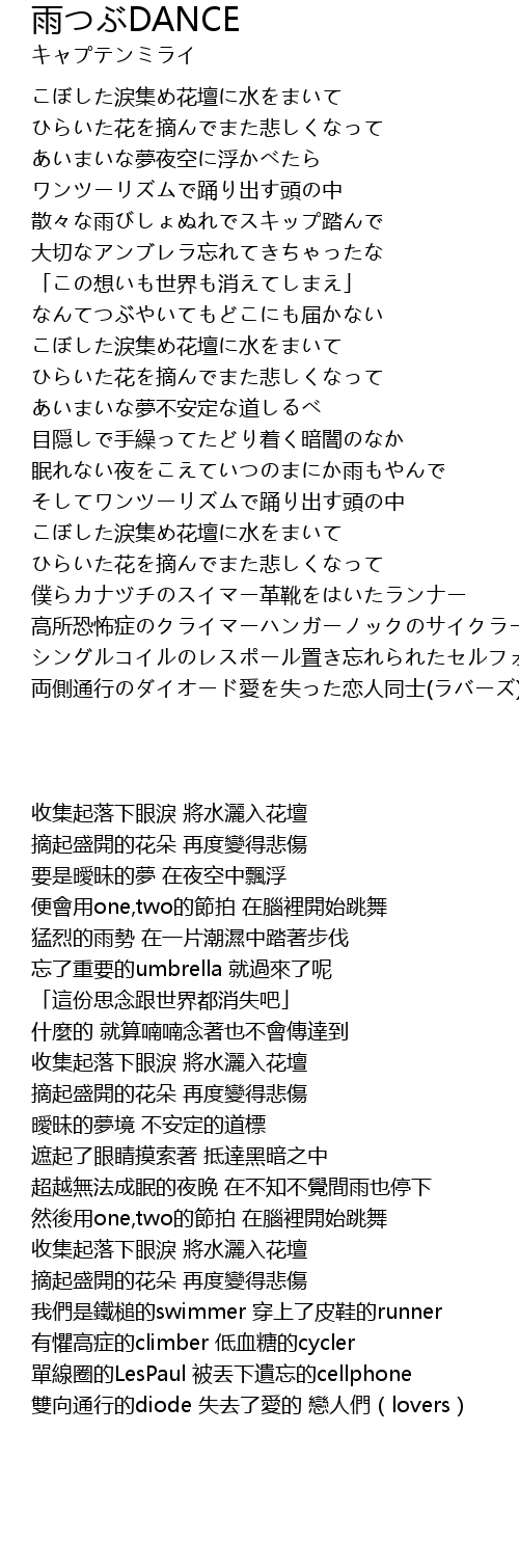 | [02:44.57] | 両側通行のダイオード愛を失った恋人同士(ラバーズ) |