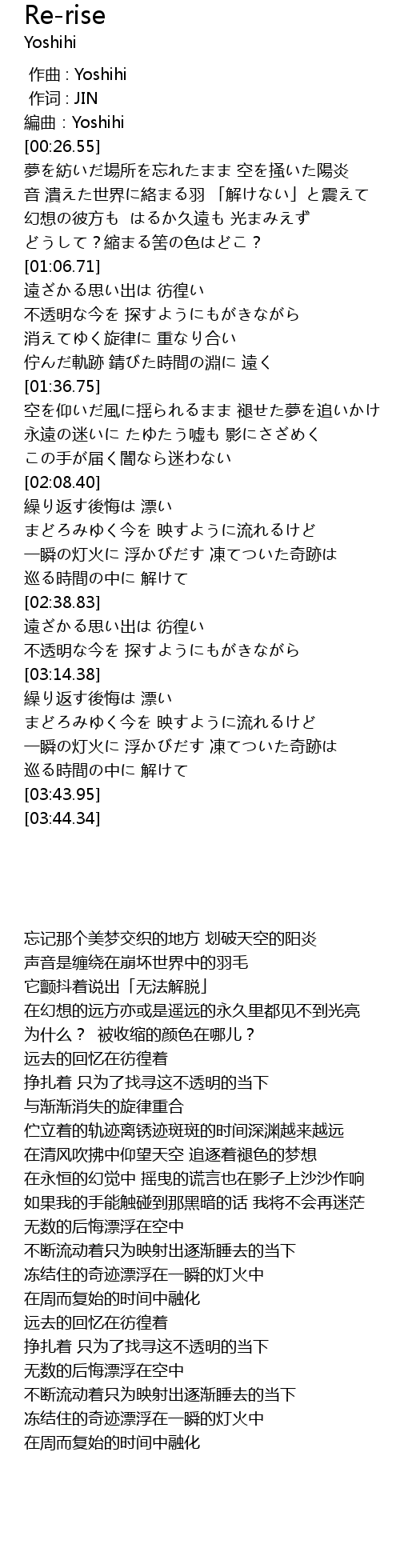 | [00:53.30] | 幻想の彼方も はるか久遠も 光まみえず |
