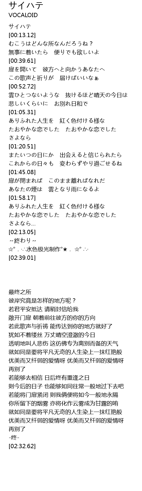 | [02:32.62] | ☆°.·∴水色极光制作°★. ☆° ∴· |