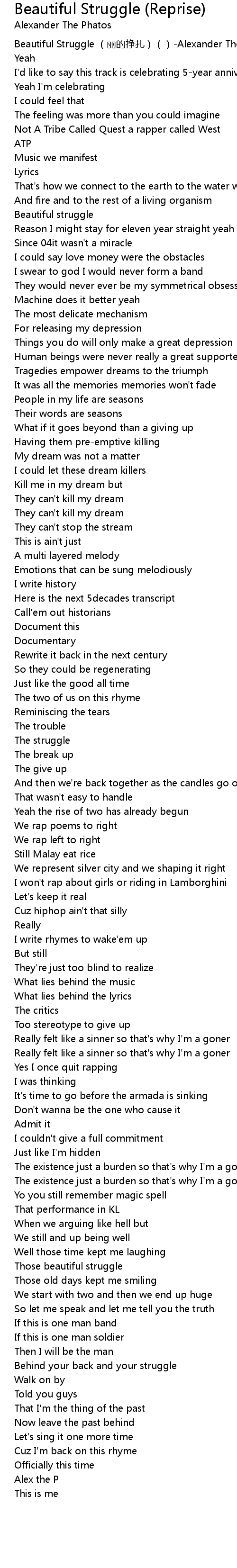 | [00:00.00] | Beautiful Struggle lì de zhēng zhá Alexander The Phatos |