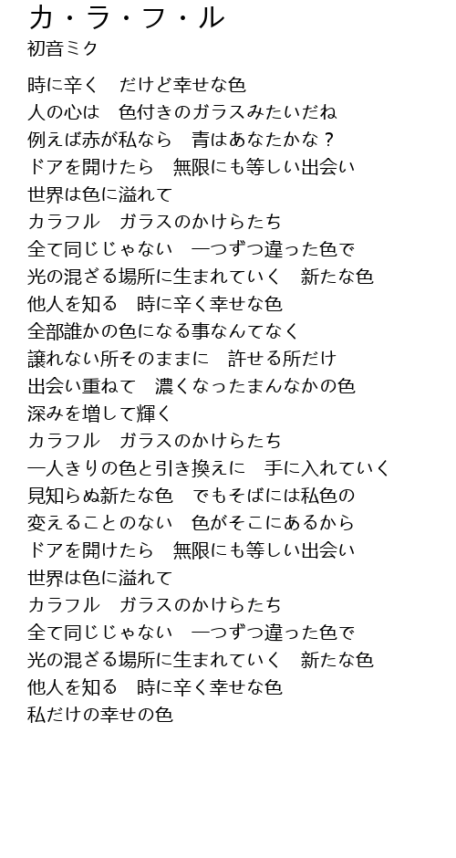 | [02:04.21] | カラフル ガラスのかけらたち |