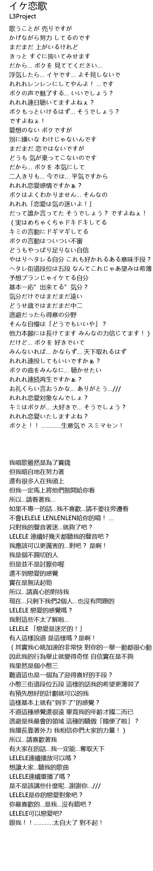 | [03:14.02] | れれれ恋愛いたしますよね? |