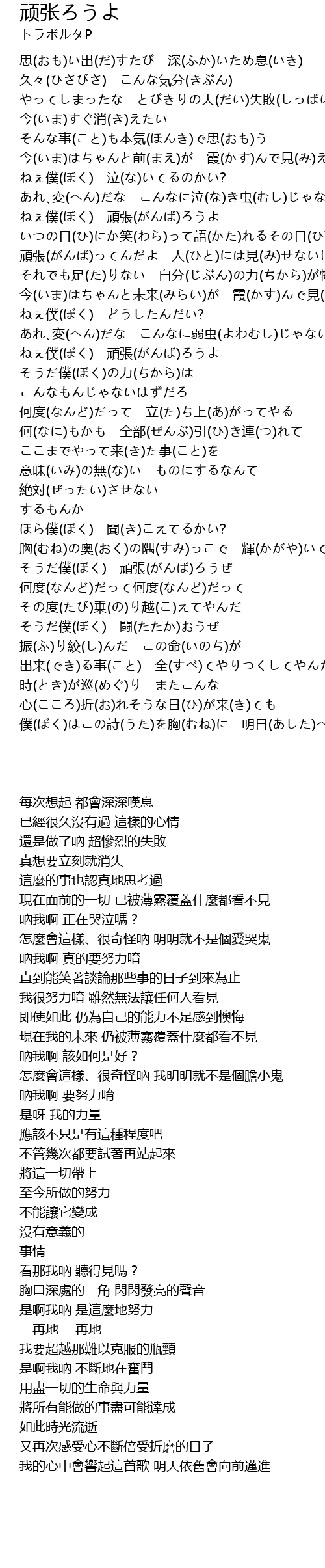 | [01:07.08] | ねぇ僕(ぼく) 頑張(がんば)ろうよ |