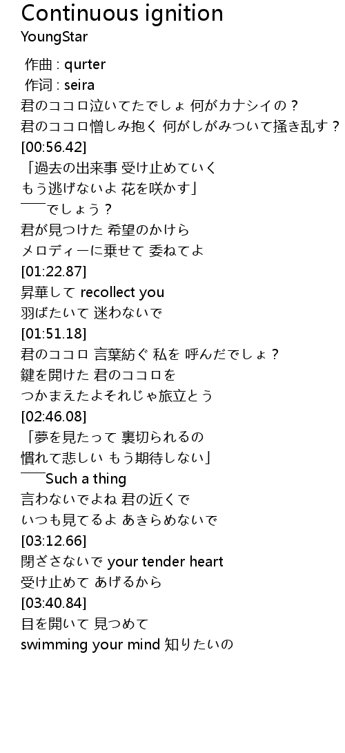 | [03:03.74] | いつも見てるよ あきらめないで |