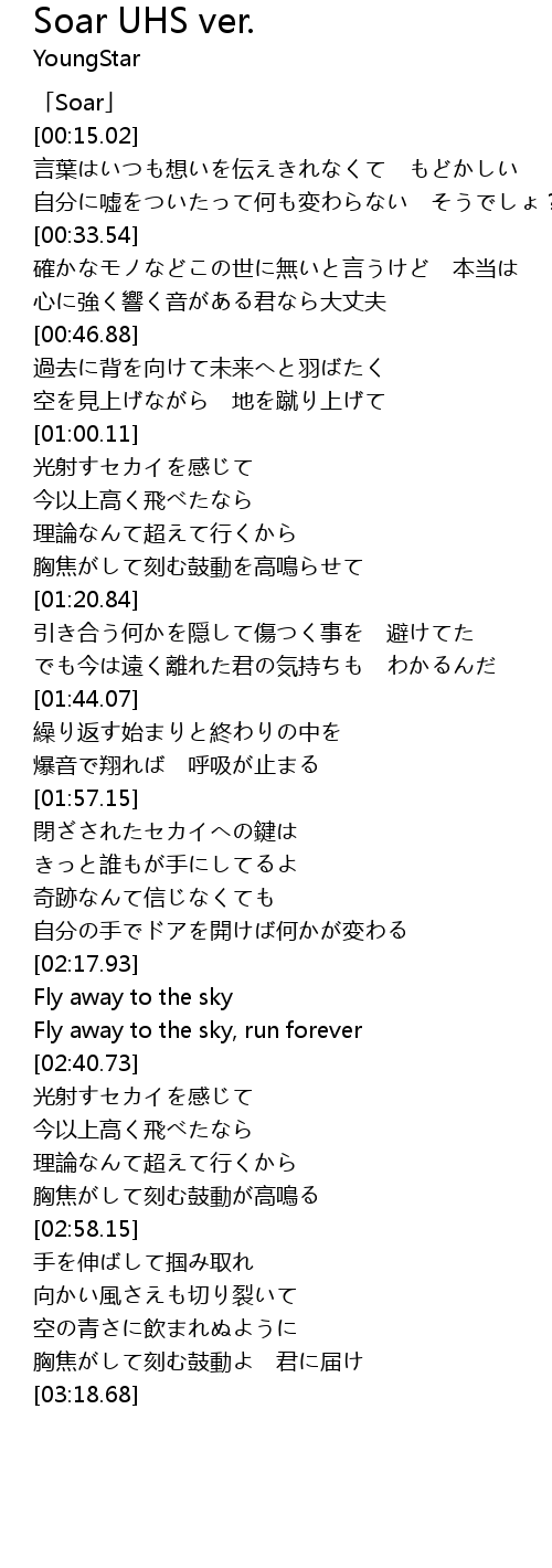 | [00:47.28] | 過去に背を向けて未来へと羽ばたく |