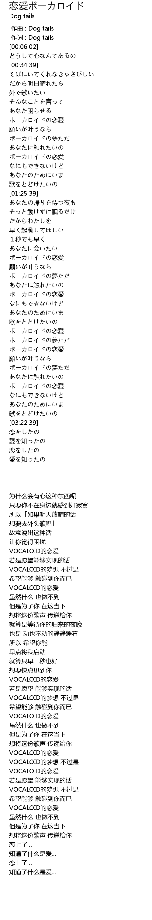 | [03:06.55] | ボーカロイドの恋愛 |